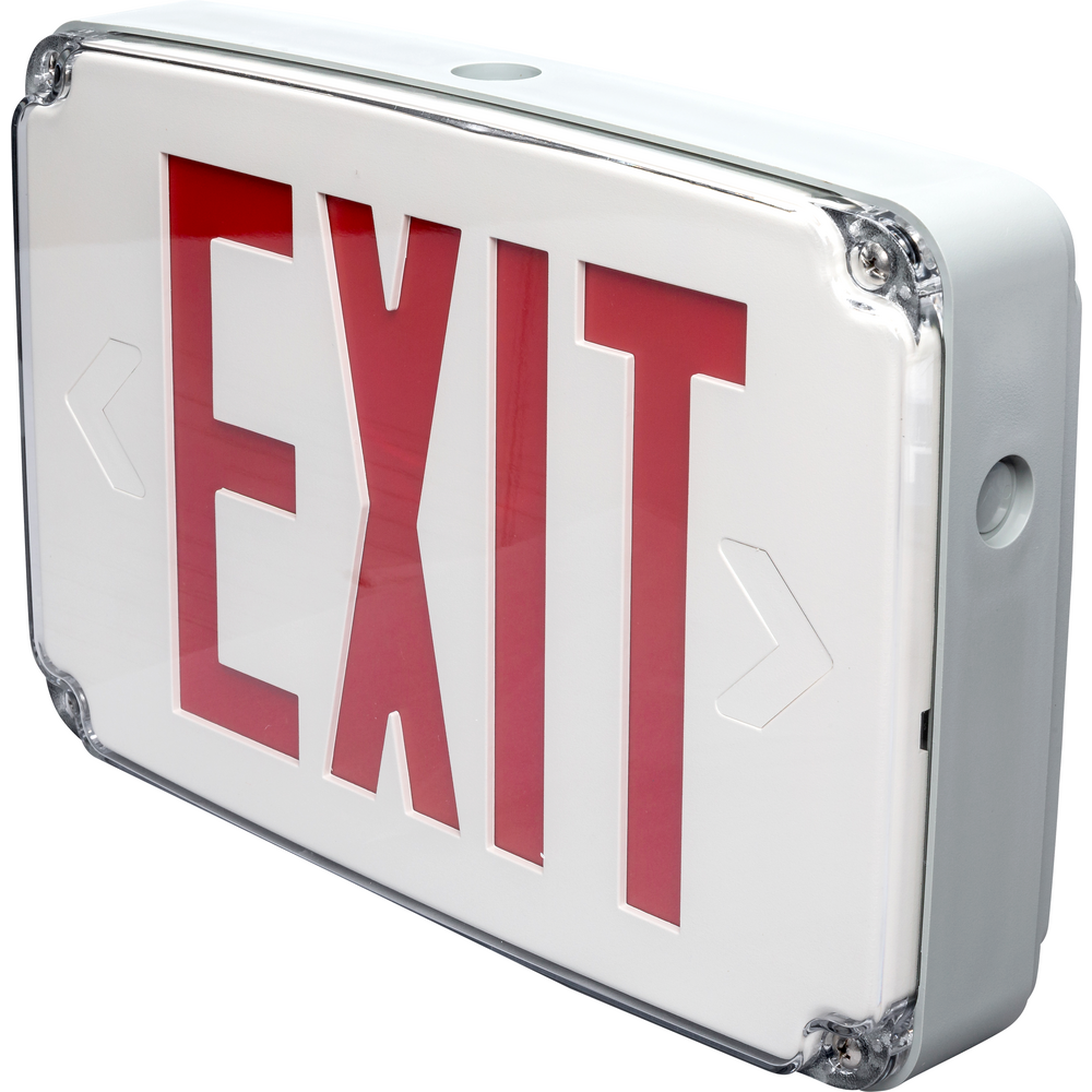 The Tamlite Lighting EXWT1RWEM LED Compact Wet Location Exit Sign is an essential safety feature for any commercial or industrial setting. Designed to perform in harsh, wet conditions, this exit sign boasts a corrosion-resistant polycarbonate housing and energy-efficient LED technology, ensuring visibility and reliability. Dual voltage compatibility, along with a robust Ni-Cad battery that offers up to 90 minutes of emergency operation, makes it a versatile choice for maintaining compliance and safety standards in diverse environments. Ideal for areas where durability and clear signage are critical, this product offers easy installation and maintenance, enhancing security and peace of mind.