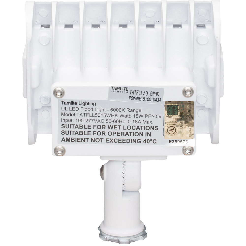 Experience unparalleled illumination with the Tamlite Lighting TATFLL5015WHK 15W White LED Flood Light with Knuckle Mount. This high-performance floodlight, featuring a robust white powder-coated aluminum housing and advanced Philips LUXEON LEDs, delivers a powerful 1863 lumens of ultra-bright 5000K light. Perfect for enhancing outdoor or industrial areas, its durable design and wet location certification ensure long-lasting reliability in harsh environments. Ideal for lighting landscapes, signage, and pathways, this energy-efficient LED floodlight combines superior brightness with a sleek, modern aesthetic.