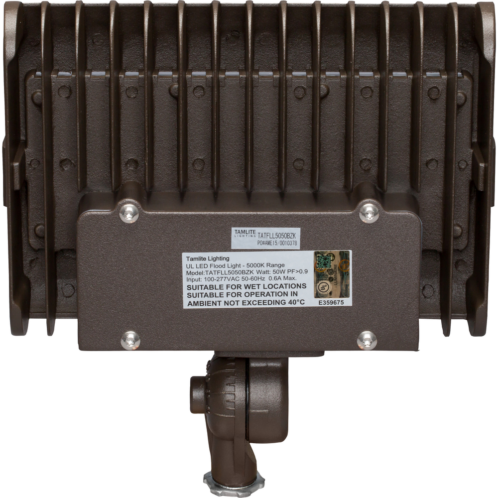 The Tamlite Lighting TATFLL5050BZK 50W LED Knuckle Mounted Flood Light stands out as a top choice for both functionality and style in outdoor lighting. With its knuckle mount design, this floodlight offers flexible installation options, perfect for illuminating landscapes, architectural features, and signage. The energy-efficient 50W LED technology ensures a bright 6219 lumens output with a long lifespan of 50,000 hours, making it a reliable and cost-effective lighting solution. Durable and designed for both commercial and residential use, this floodlight is an essential upgrade for enhancing security and visibility.